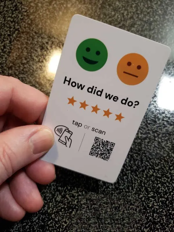 Keep it in your pocket and let customers tap or scan it with their phone for new reviews on the job site after you've finished work for a happy customer.