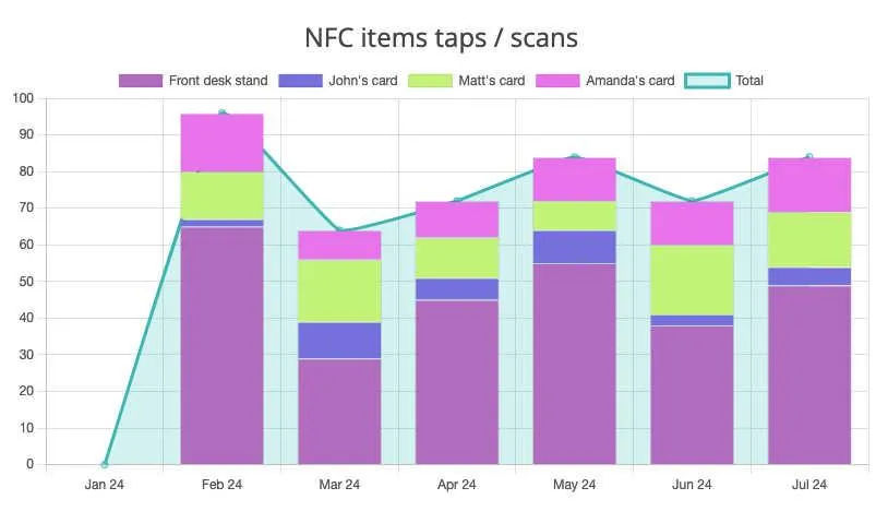 Get insights about the performance of your review activity generated by your various NFC/QR items. By assigning NFC items to locations, departments, employees, etc. you can learn about the performance of each section or employee.