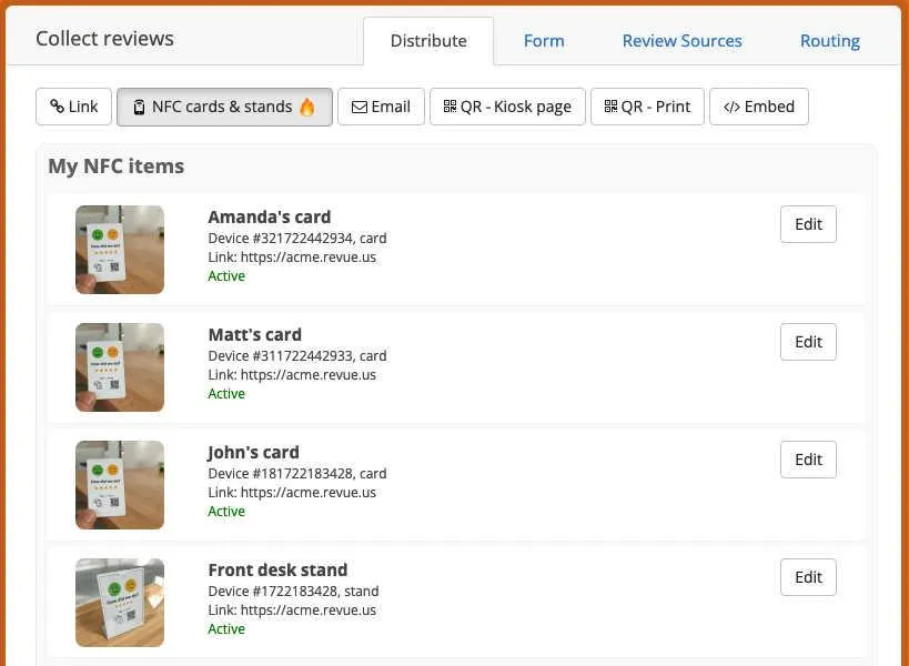 By default, your NFC/QR card or stand will link to your AdLib Media review collection page. You can configure it to collect reviews for any platform you like such as Google, Tripadvisor, and so forth. You can also use any link you like ins