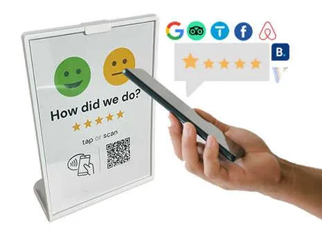 Place a review stand, at your place of business, on your business counter, reception desk, tables and more. Get happy reviews while the customer is still onsite.