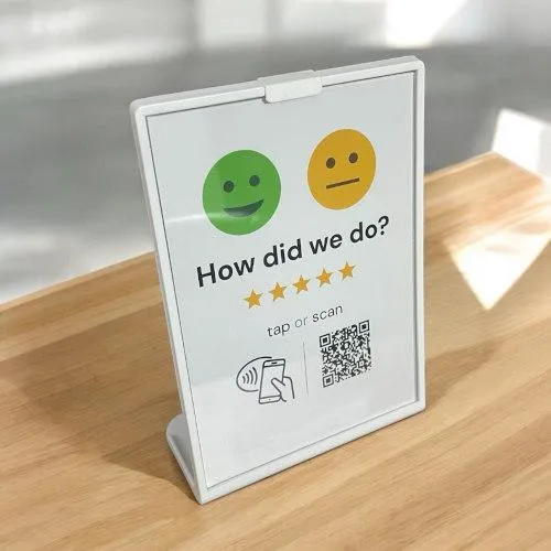 Easily collect reviews with NFC cards and stands, offering a seamless, contactless way for customers to share their feedback with just a tap of their phone.